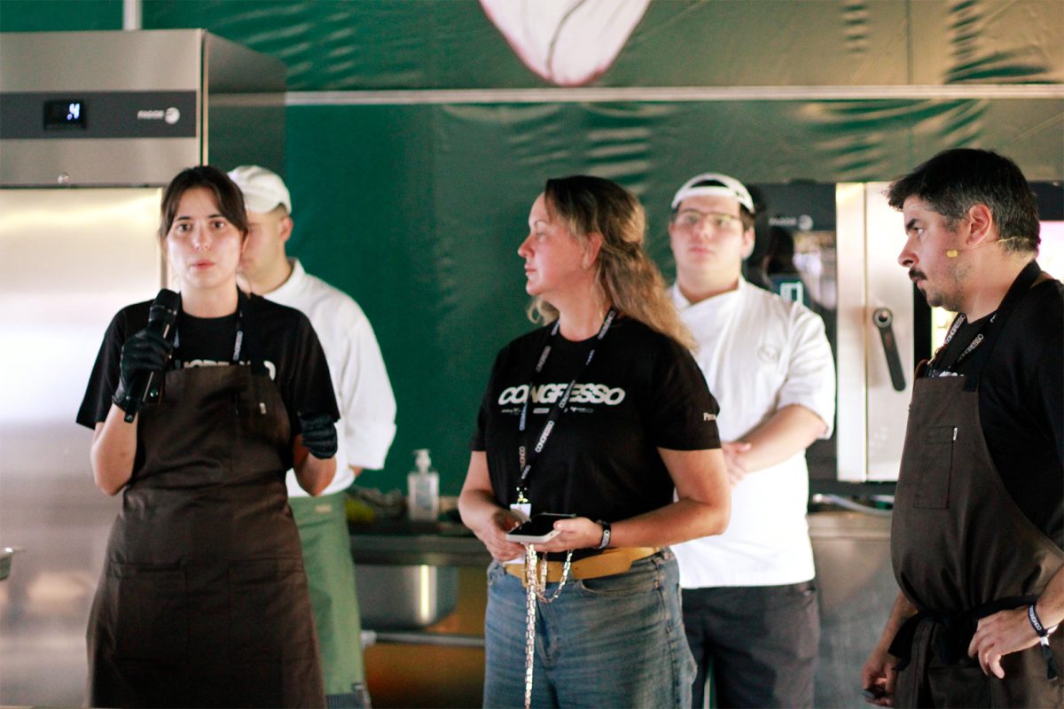 The following day, chef Daniel Gomes returned to action at the same time, presenting another recipe using veal neck in a further 15-minute presentation in the Tasting area. Immediately afterwards, on the Product Stage, chefs Rita Gomes and João Pires from Forno de Jales took to the floor with their presentation ‘Gastronomy as the Driving Force of the Rural World,’ serving two recipes combining less noble parts of the carcass, such as the heart, liver, chã de fora and nispo. Of particular note was the creation of a sausage made up of around 80% of carcass leftovers that are normally discarded by consumers and restaurant operators.